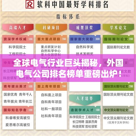 在全球電氣行業(yè)中,外國電氣公司以其卓越的技術(shù)創(chuàng)新、產(chǎn)品質(zhì)量和市場(chǎng)份額,一直處于行業(yè)的前列,本文將為您揭示全球外國電氣公司的排名,帶您了解這些電氣行業(yè)的佼佼者。