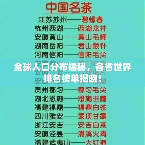 隨著全球人口的不斷增長和遷徙,各國的人口數(shù)量也在不斷變化,本文將探討全球各省的人口排名,揭示世界人口分布的秘密。
