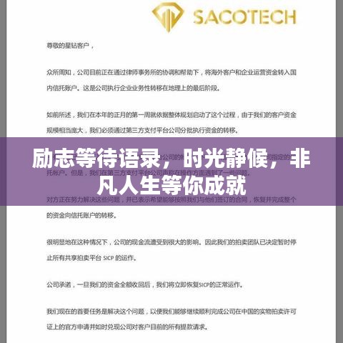 身為站長(zhǎng),我深知每一個(gè)訪客對(duì)于有價(jià)值內(nèi)容的渴望,我將以“勵(lì)志等待語(yǔ)錄經(jīng)典短句”為主題,為您呈現(xiàn)一篇充滿正能量的文章,讓我們一起領(lǐng)略那些關(guān)于等待與勵(lì)志的經(jīng)典短句,它們將激勵(lì)我們靜候時(shí)光,成就非凡人生。