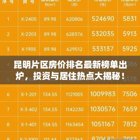 昆明片區(qū)房價(jià)排名最新榜單出爐,投資與居住熱點(diǎn)大揭秘!