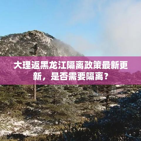 隨著疫情形勢的不斷變化,許多人在計劃旅行或返鄉(xiāng)時都會關(guān)心一個問題:是否需要隔離?特別是關(guān)于“大理回黑龍江用隔離嗎”的查詢,近期引起了廣泛關(guān)注,本文將為您提供最新的相關(guān)信息,以便您做出合理的安排。