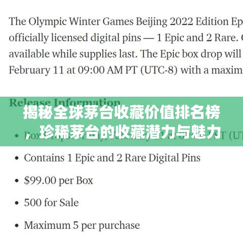 茅臺(tái)作為中國白酒的代表,不僅在國內(nèi)享有盛譽(yù),在國際上也逐漸嶄露頭角,茅臺(tái)的收藏價(jià)值日益受到關(guān)注,尤其是某些珍稀茅臺(tái)的價(jià)值更是不斷攀升,本文將為您揭示世界茅臺(tái)收藏價(jià)值排名,帶您了解茅臺(tái)的珍稀程度和收藏潛力。