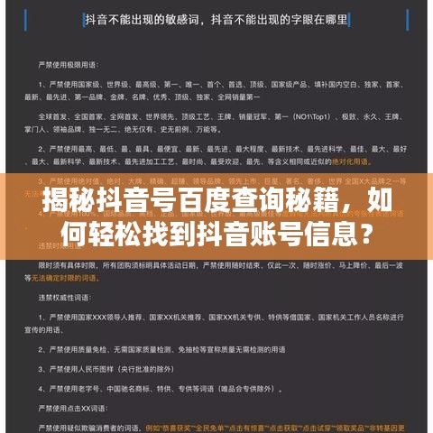 揭秘抖音號(hào)百度查詢秘籍,如何輕松找到抖音賬號(hào)信息?